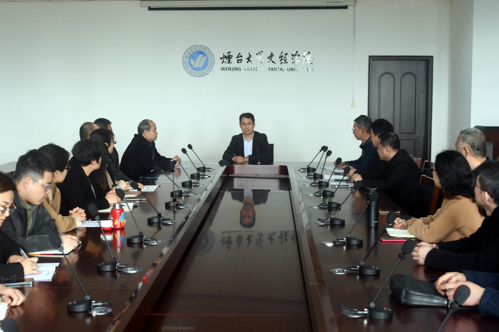 4月9日下午,我院于二教B区六楼会议室召开第一次全体教职工大会,会议由党总支书记王文才主持,校长于光辉、副校长王培进出席会议,304永利集团全体教职工参加会议。