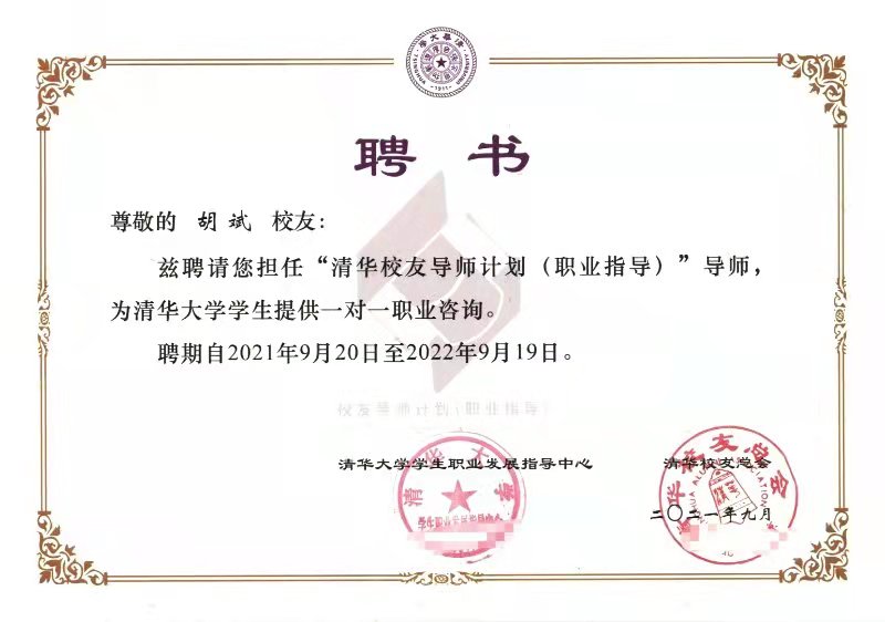 “清华校友导师计划”是由清华大学学生职业发展指导中心与清华校友总会在清华建校110周年校庆之际联合发起,旨在搭建清华在校学生与优秀校友之间的互动交流平台,通过邀请具有丰富行业经验的中青年校友担任职场导师,为清华在校生提供一对一的行业咨询,引导学生树立正确的职业价值观,毕业后到祖国最需要的地方建功立业。