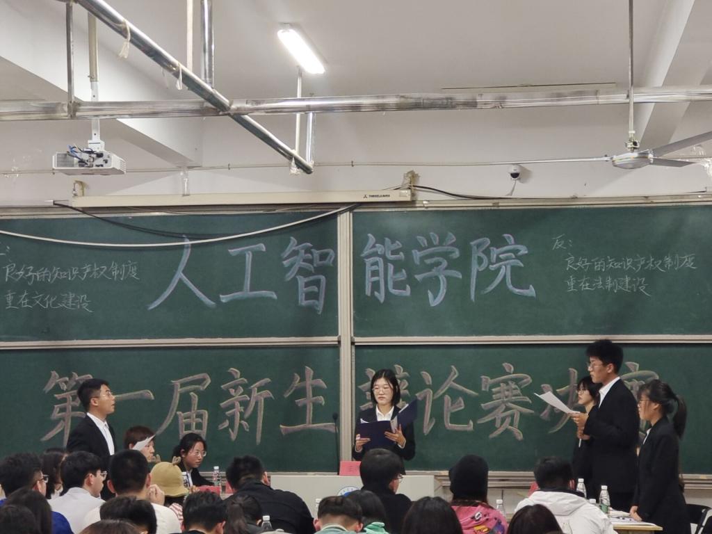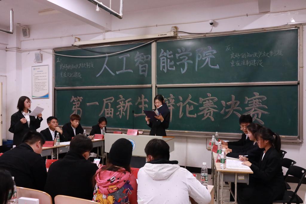本次决赛赛由自动化与人工智能作为正反方就“良好的知识产权重在文化建设还是法治建设”这一辩题展开激烈辩论。比赛伊始,双方已是你来我往,双方辩手通过提论点、驳立论、对辩、盘问等环节展开辩论,选手们在各个环节中思路清晰,引经据典,使现场气氛迅速升温。