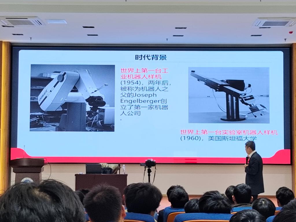 11月14日上午,304永利集团在综合楼报告厅举行学科交流专题讲座,机器人应用研究院执行院长胡斌博士作为主讲人,21级全体学生参加此次讲座。