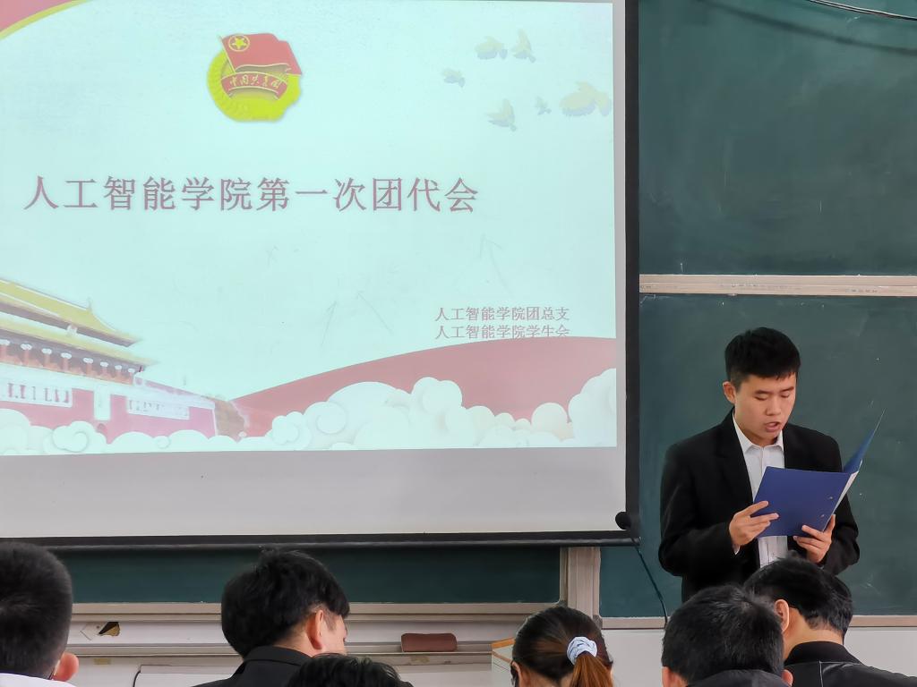 上午12时,大会在全场齐唱《中国共产党主义青年团团歌》声中开幕。陈鹏程老师代表学院团委向大会的召开表示热烈祝贺,他充分肯定自学院成立以来各班团组织在思想引领、创新创业、志愿服务、校园文化活动等方面取得的丰硕成果,并希望学院共青团要主动带领全院青年师生树立远大理想,练就过硬本领,为学院发展贡献一份青春力量。