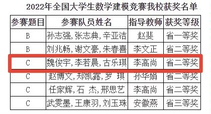 喜讯!近日,全国大学生数学建模竞赛圆满落下帷幕,经过激烈角逐,我院学子魏俊宇、古乐琪、李若晨表现出色,成绩优异,成功斩获山东省二等奖。全国大学生数学建模竞赛作为全国高校规模最大的基础性学科竞赛,该比赛的举办对培养大学生创新意识,训练快速获取信息的能力等方面具有重要意义。