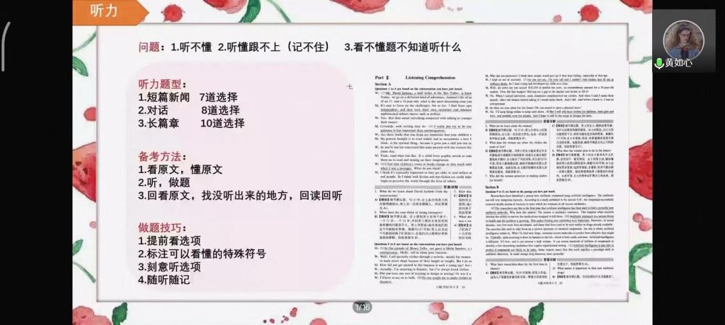 11月4日晚,304永利集团于线上开展四六级经验分享会,并邀请外国语学院黄如心和304永利集团魏俊宇同学从自身经验出发对四六级考试进行了解读与经验分享,旨在帮助同学们清晰四六级备考过程中存在的问题,切实提高英语水平,顺利通过考试。