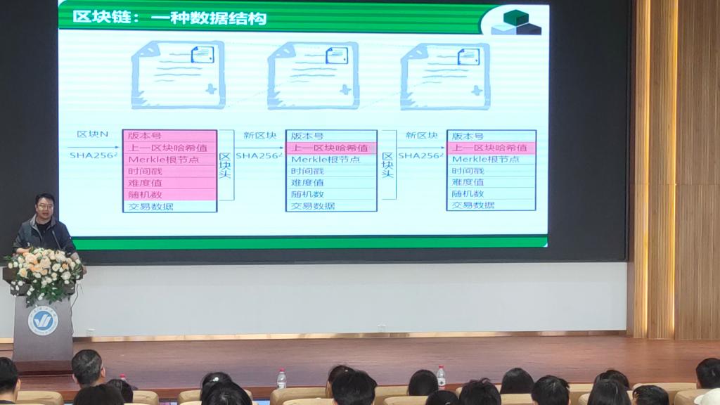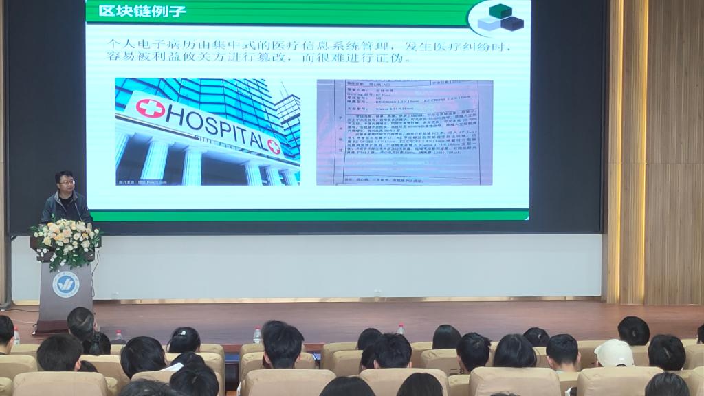 会上,李教授以“什么是比特币”的问题开始了本次讲座,用生动形象的比喻引出了区块链技术的一系列基本概念,迅速吸引了在场同学们的注意力。区块链技术的专有抽象名词在经过李教授的讲解变得通俗易懂,信息社会的变迁和区块链的核心价值也逐渐清晰。李教授表示区块链技术应用于生活的方方面面,并且能够做到数据的透明,不可篡改,实现一种平衡的信任。最后,李教授立足当下,强调了区块链的重要性和潜藏的种种机遇。李教授由浅入深的细致讲解,使得同学们对区块链技术有了更清晰的认识,对深入学习区块链技术有了更强的动力,纷纷表示希望能有机会学到更多的前沿技术。