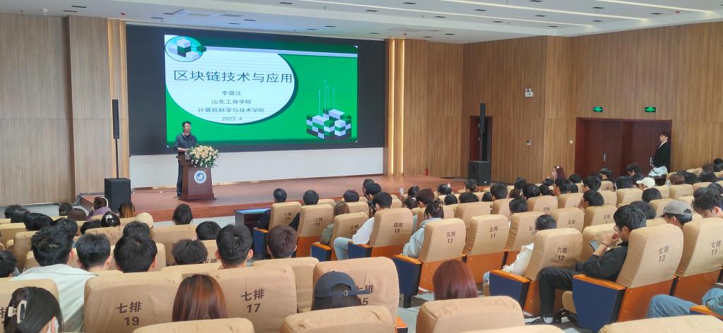 为全面提高学生的科创素养,促进学院学术科技类项目建设,4月19日下午,304永利集团于综合楼六楼报告厅举办关于“区块链技术与应用”的专题学术讲座,山东工商学院李晋江教授应邀为大家作出学术报告,我院宋召青老师担任主持。