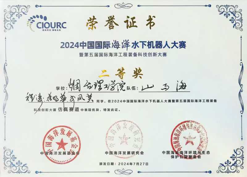 近日,由中国海洋发展基金会、中国海洋发展研究会、中国海油海洋环境与生态保护公益基金会共同主办的2024年中国国际海洋水下机器人大赛暨第五届国际海洋工程装备科技创新大赛圆满落幕。经过激烈比拼,我院程涛、秦明华等同学组成的“山与海”队,在胡斌博士的指导下脱颖而出,荣获仿真赛道二等奖的荣誉,彰显了我校在海洋水下机器人领域的强劲实力。