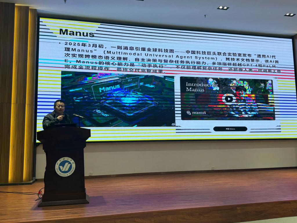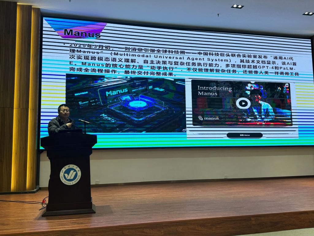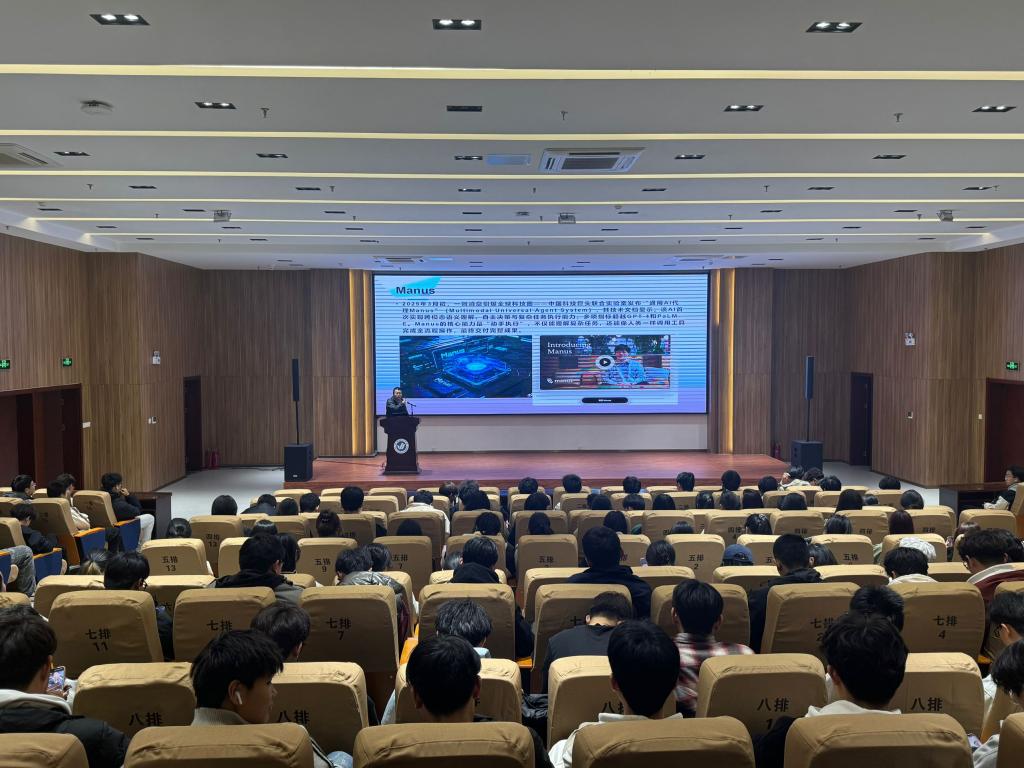 为了让同学们更好地了解大模型技术的发展现状与应用前景,激发同学们对人工智能领域的探索热情,我院于3月11日,综合楼六楼报告厅,特邀迟殿委副教授开展“大模型技术与应用”的主题讲座。本次吸引了众多对人工智能感兴趣的同学前来聆听,现场气氛热烈。