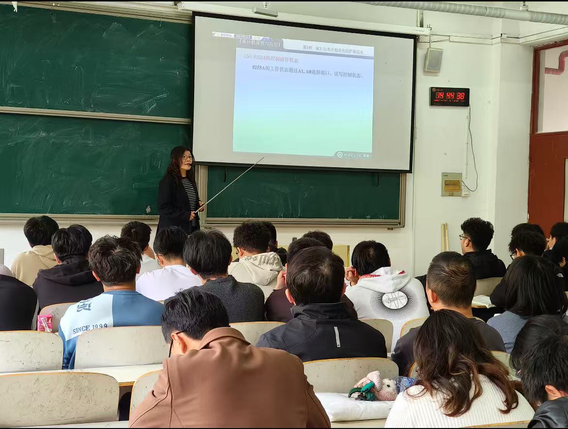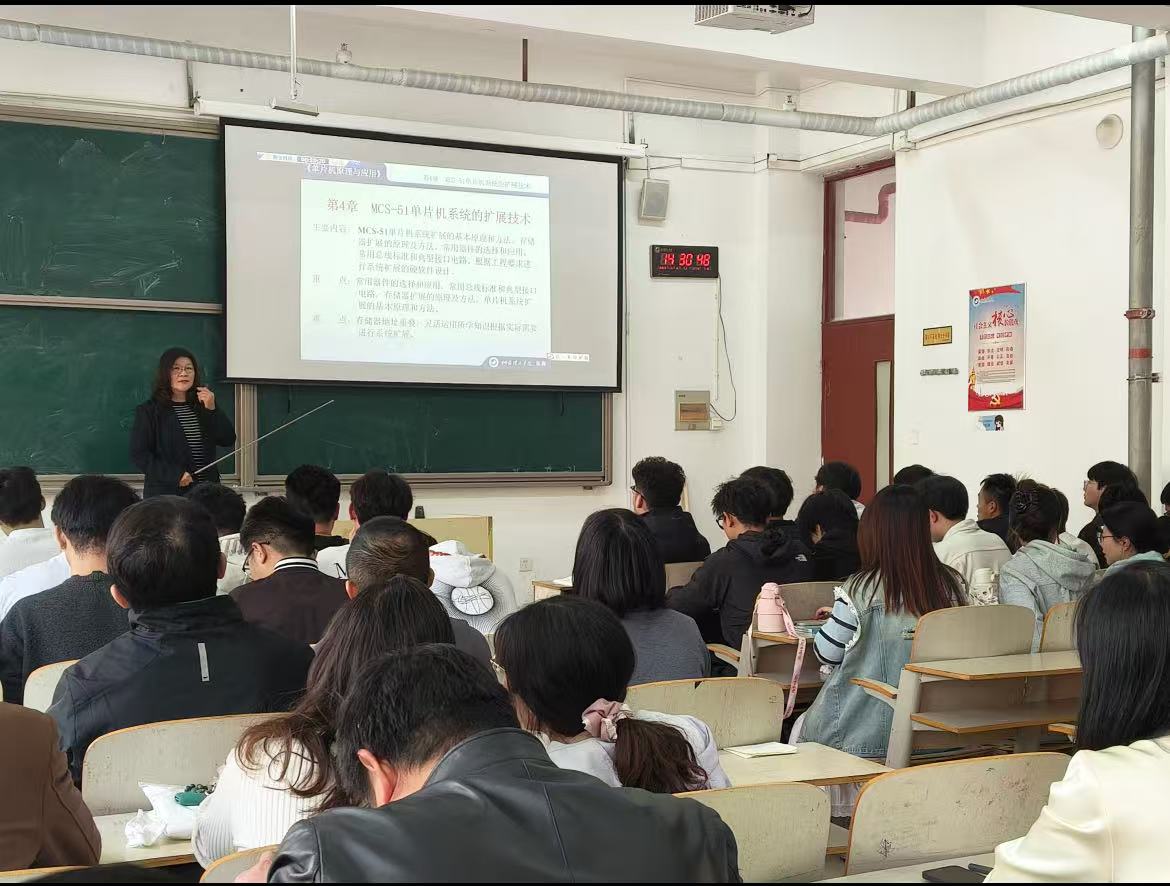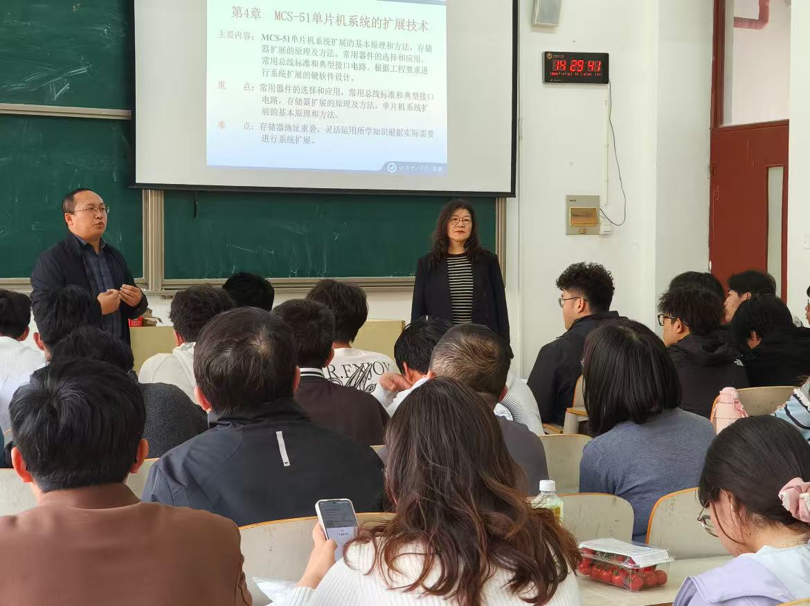 张鑫教授作为学院引进的资深银龄教师,凭借其深厚的专业功底和丰富的教学经验,为到场教师呈现了一堂高质量的示范课。课堂上,张鑫教授以单片机的核心原理为切入点,通过深入浅出的讲解、生动形象的案例分析以及理论与实践相结合的教学方式,将复杂的技术知识转化为易于理解的内容。张鑫教授巧妙地引导学生思考问题、解决问题,充分调动了课堂的互动性和参与感,展现了卓越的教学艺术和教育智慧。