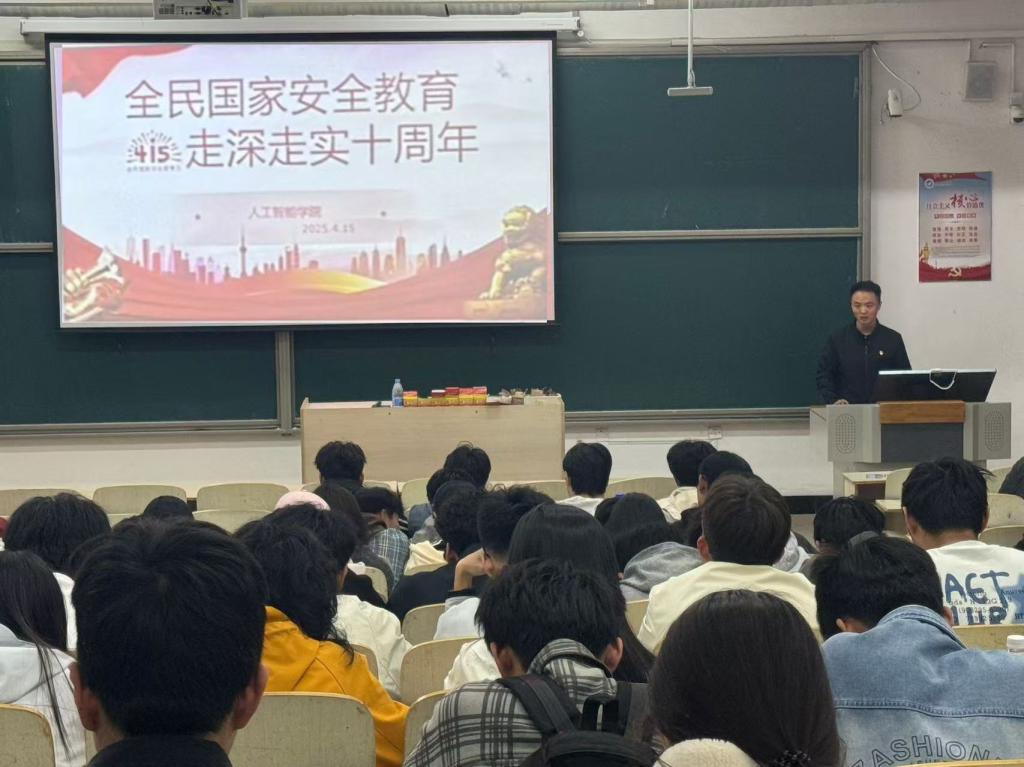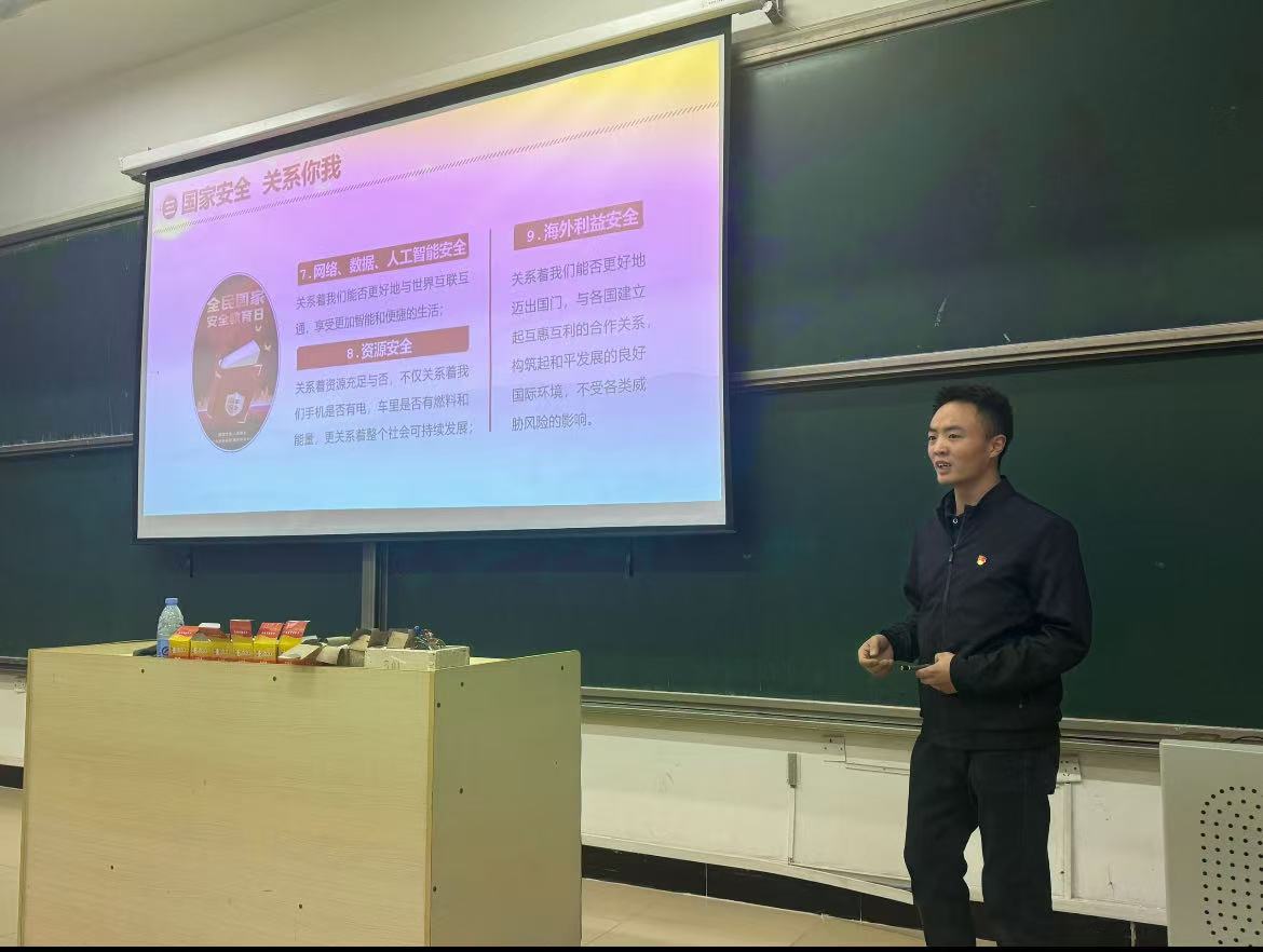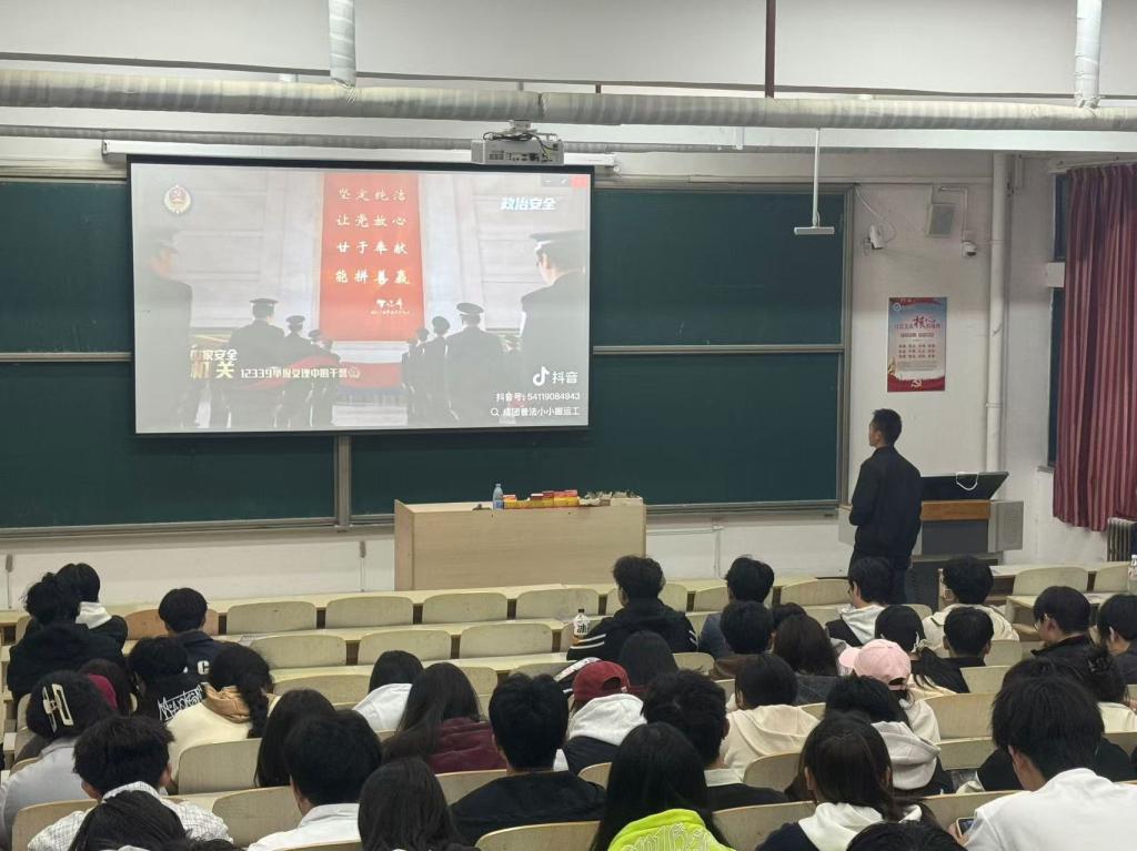 在第十个全民国家安全教育日到来之际,为深入贯彻落实总体国家安全观,进一步增强青年学生的国家安全意识,激发同学们维护国家安全的责任感与使命感,4月15日我院于一教301开展了一场以 “全民国家安全教育,走深走实十周年”为主题的讲座。此次讲座邀请我院退伍大学生张弘贵作为主讲人,吸引了众多师生前来聆听,现场气氛庄重而热烈。