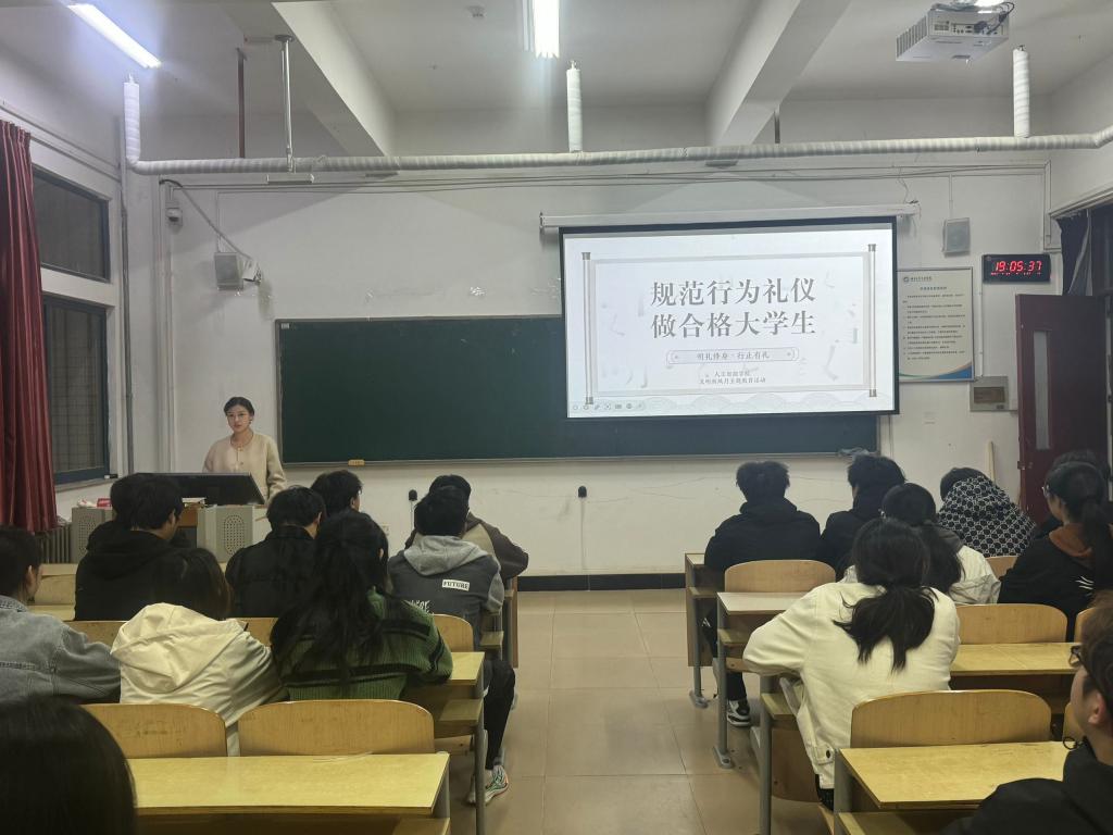 为进一步提升我院学生文明素养,增强礼仪规范意识,4月24日,我院邀请具备专业培训资质的逯文诺同学,为我院学生开展了以“规范行为礼仪做合格大学生”为主题的礼仪教育主题讲座,现场气氛热烈,座无虚席。