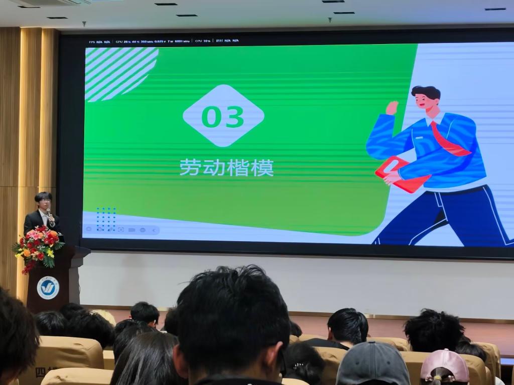 随后,11位宣讲者依次登台,各展风采。王鑫《以青春之劳,续非遗华章》,结合生动案例,讲述青年学子如何凭借劳动实践,让古老的非物质文化遗产重焕生机,将青春的活力融入传统文化传承;李美莹《劳动创造价值,奋斗成就未来》,通过详实的数据和感人至深的故事,深入阐释了劳动与价值创造、梦想实现之间千丝万缕的紧密联系。其他选手们也通过真挚深沉的情感,深深感染着每一位听众,他们带来的劳动故事激励着同学们在日常生活与学习中,积极主动地参与劳动实践,以实际行动诠释劳动精神,用不懈奋斗书写青春华章,让梦想在劳动的沃土里绽放出最绚烂的花朵 。