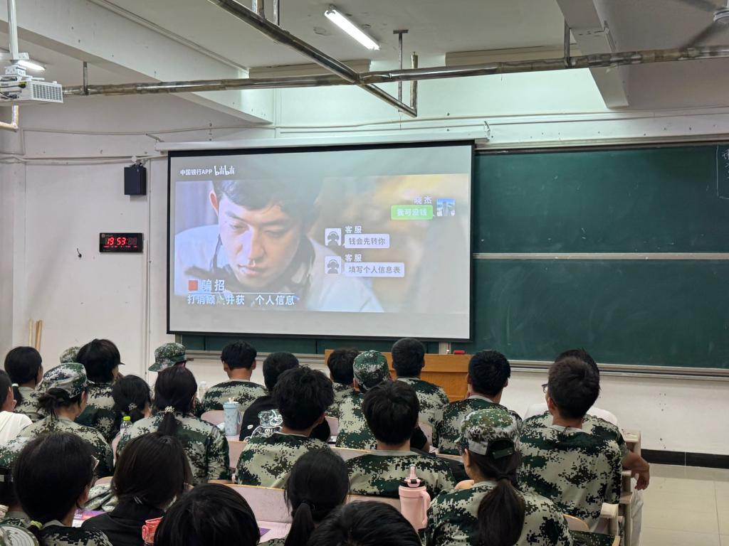 活动当天,学院将防诈骗、防火宣传教育融入新生入学教育体系,在新生班级自习教室同步开展宣传短片播放活动。考虑到新生刚步入大学校园,对校园及周边环境尚不熟悉,易成为诈骗分子瞄准的对象,学院精选的防诈骗短片以“校园常见诈骗类型解析” 为核心,通过情景再现的方式,生动还原了 “冒充客服退款”“虚假兼职刷单”“校园贷陷阱”“冒充老师收取费用” 等典型诈骗案例。随后播放的防火宣传教育短片,则聚焦校园宿舍、实验室等重点区域的火灾隐患。短片通过真实火灾事故画面与 3D 动画演示,清晰展示了 “违规使用大功率电器”“私拉乱接电线”“易燃物品随意堆放” 等行为的危害,同时详细讲解了火灾初期扑救方法、灭火器正确使用步骤、火场逃生路线选择及自救技巧。