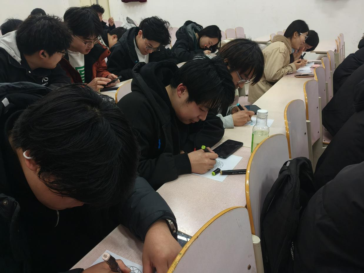 创作环节中,同学们纷纷沉浸于独属于自己的色彩世界,尽情释放内心情绪:有人以暖橙、明黄等明亮色调,勾勒出满含希望与活力的图案,诉说对新学期的期待;有人用浅蓝、淡绿等柔和色彩铺陈画面,勾勒出内心的宁静与平和;也有人大胆运用浓烈的撞色搭配,将积压的焦虑、疲惫等情绪尽情释放于笔尖。整个创作过程没有对错的评判,唯有对自我情绪的全然接纳,同学们在笔尖与画纸的轻触之间,慢慢卸下心理包袱,不少同学感慨:“专注画画的时候,脑子里的杂念都消失了”“原来不用纠结太多,跟着感觉走就很舒服”。