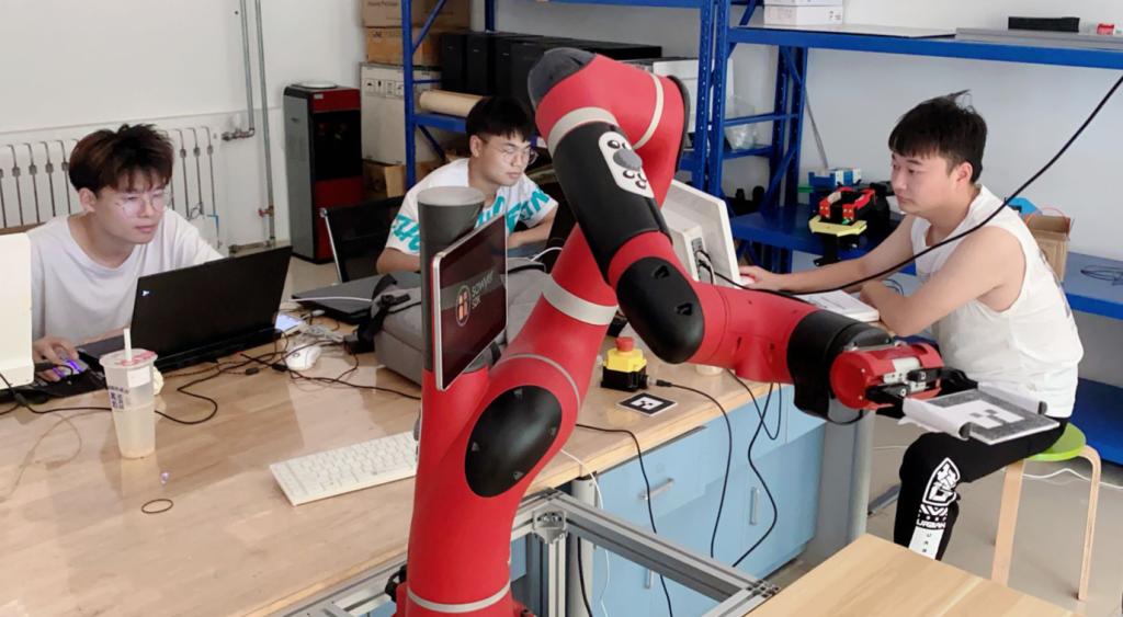机器人应用研究院是学院校企合作孵化组成的高新产业研究院,是以胡斌博士为带头人,以非凡智能科技有限公司为主要合作企业组成,主要以智能协作机器人,机器视觉与抓取,智能快换夹具设计为主的核心智能领域开展教学研究的学术实践平台。非凡智能科技有限公司自成立以来依靠中科院和清华大学研发团队支撑,在智能协作机器人领域取得十几项发明专利,于19年获得国家高新技术企业认证。自机器人应用研究院成立以来,发挥校企合作优势,组建了机器人智能制造实验室和生产设实习基地,以企业技术优势和学校研究生本科生组成实践团队,在机器视觉和柔性夹具发表专利5项,学校学生组队参加2020年IROS大赛并取得亚军。以学校和企业合作形式省市级项目三项,得到了校内外一致认可。