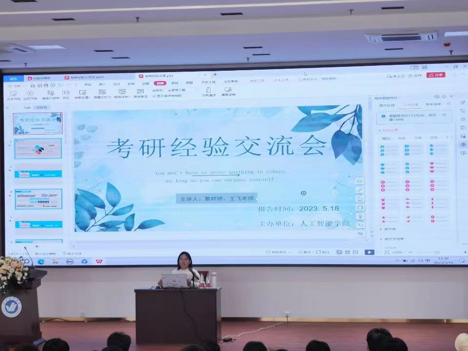 5月18日,我院于综合楼六楼举办考研经验交流会,旨在帮助同学们深入了解研究生考试,掌握备战技巧,明确学习目标。葛婷婷、王飞两位老师担任主讲。