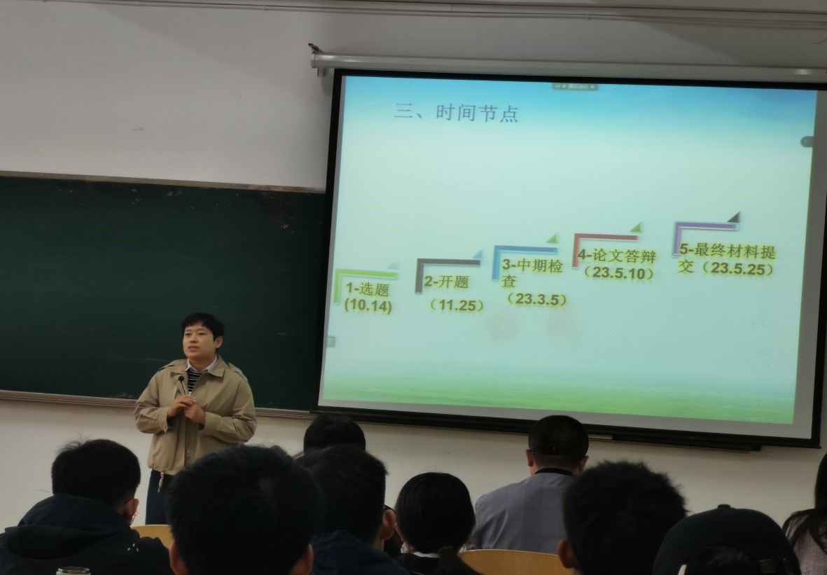 随后,徐红梅老师指出,只有将自己所学的理论知识和实践应用充分结合起来,才能成为一个合格的应用型人才,才能更好的走向社会。接着,徐老师向同学们详细介绍了毕业设计的流程,论文的书写格式,开题答辩的规则及时间节点等。