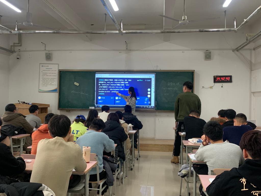 机器人专业教师葛婷婷、自动化专业教师沈君和人工智能专业教师黄甜甜分别讲授了《程序设计基础》《Python程序设计》和《数据结构与算法》三门专业课程的重点内容。三位教师结合专业特点和具体学情创新教学设计,精心选取教学内容,理论联系实际,以学生为中心有效组织课堂活动,取得良好教学效果,并就教学设计等问题与听课教师进行了交流互动。