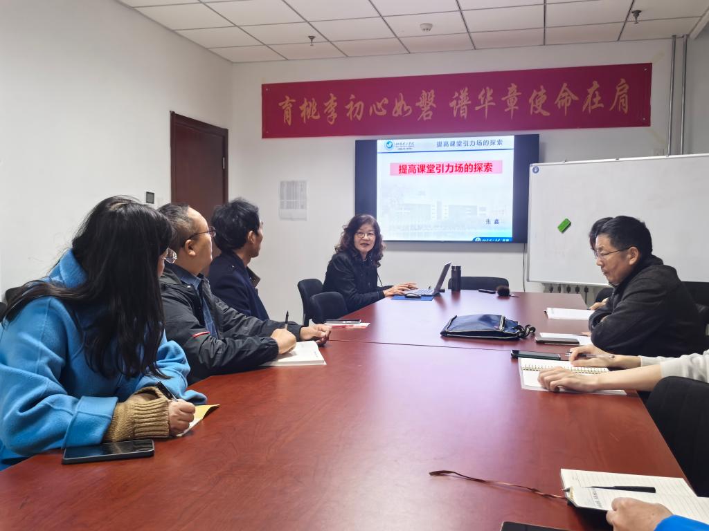 最后,教研室主任沈君老师对张教授分享的内容做总结,首先感谢张教授将“课堂引力场”这一概念,从一个美好的愿景,具象化为我们每一位教师都可以着手构建的生动实践。强调了一流的课堂不仅仅是一个传授知识的‘空间’,更是一个能够激发思维、凝聚注意、点燃热情的“能量场”。希望全体教师能将今天的收获内化于心、外化于行,在今后的教学中,勇于尝试、大胆实践,共同致力于将我们的每一堂课,都打造成为充满智慧光芒与成长魅力的“高能引力场”。教研室全体教师参加了此次分享会。