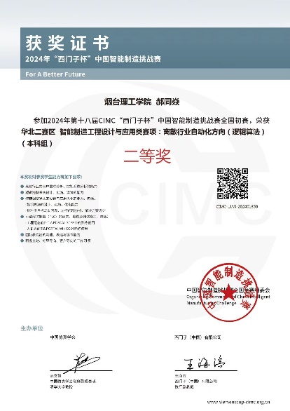 在沈君与姜超老师的悉心指导和培训下,学生们完成了项目设计的程序编写、WinCC画面设计以及调试等内容,并确保了所设计项目的功能完整、运行可靠和界面美观易操作。在赛场上,队员们沉着冷静,团结协作,经过师生们的共同努力,最终在126支队伍中脱颖而出,荣获该赛项省二等奖。