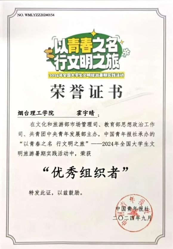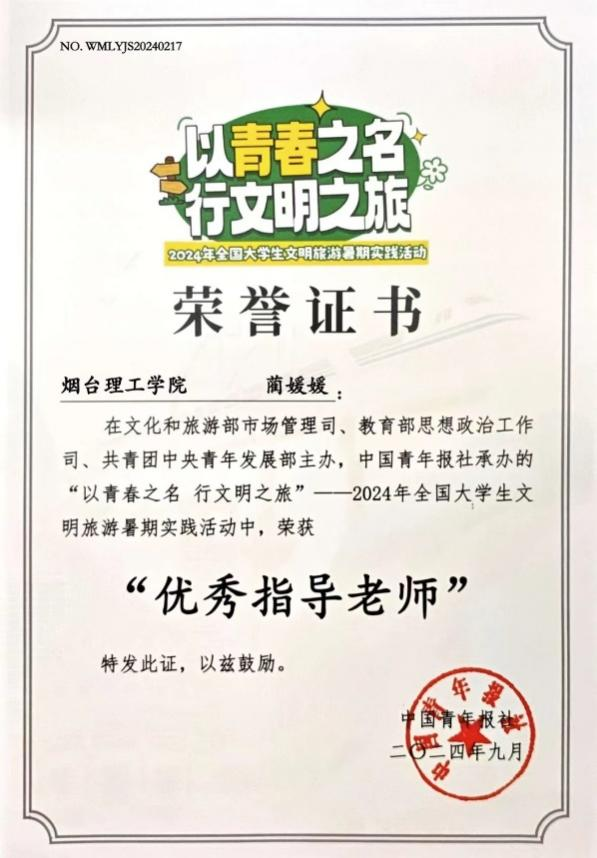 近日,由文化和旅游部市场管理司、教育部思想政治工作司、共青团中央青年发展部联合主办,中国青年报社承办的“以青春之名,行文明之旅”——2024年全国大学生文明旅游暑期实践活动圆满落幕。304永利集团“红韵向上,寻根沂蒙”志愿者团队在此次活动中表现突出,荣获多项佳绩。