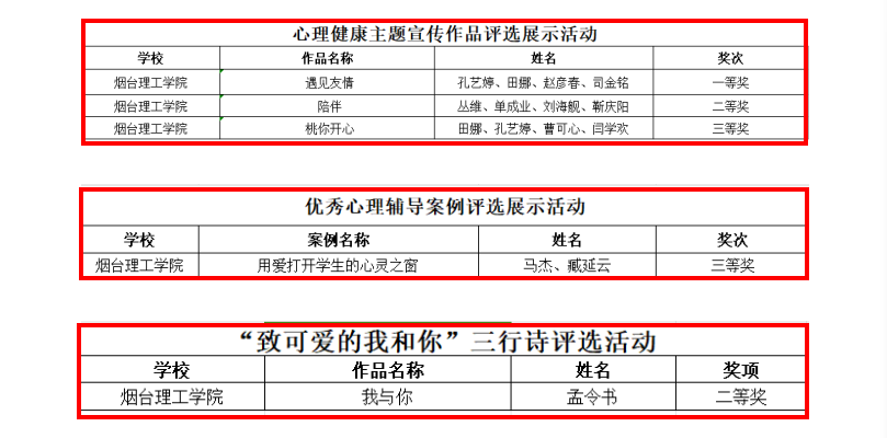 为有效提升学生心理健康素养,提高学校心理健康教育工作水平,自2023年4月以来,我校积极响应《关于举办2023年山东省高校心里健康教育月评选展示活动的通知》要求,围绕“关爱陪伴 守护成长”活动主题,广泛开展丰富多彩的心理健康宣传教育活动,并在各类主题活动中择优报送作品参加省级评选。