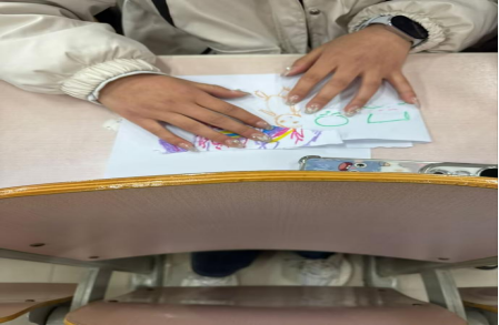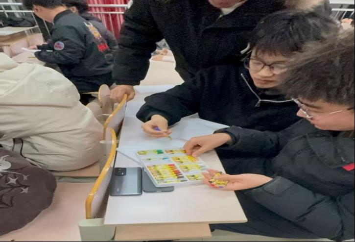 活动中,学生使用三色蜡笔匿名绘制近期困扰,画作折叠后投入“情绪熔炉”纸箱,通过撕毁动作释放焦虑;随后每人随机抽取他人画作碎片,用环保胶水拼贴为新作品,并以金色线条勾画裂痕,象征创伤修复与希望重生。参与者为作品命名并写下寄语,在协作中打破情感隔阂,感受集体共鸣。