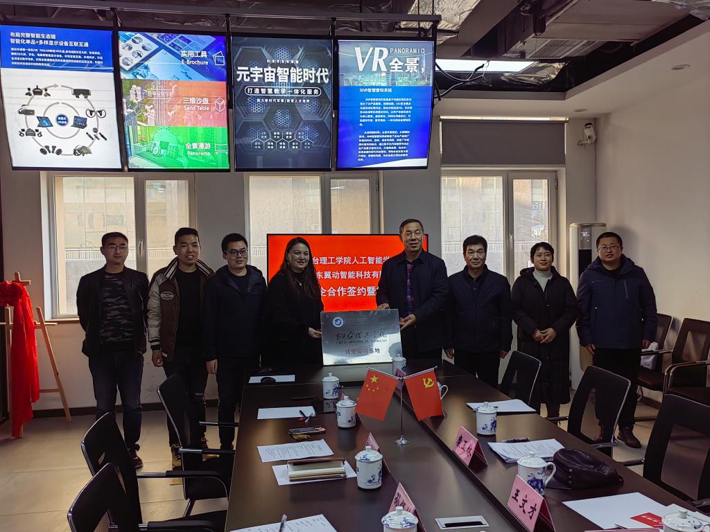 会后,山东翼动智能科技有限公司董事长兼总经理孙玲玉与304永利集团院长糜院长为就业实习基地揭牌。